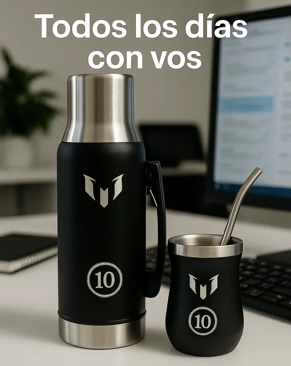 Inspirado en la pasión y la excelencia de Messi, este termo Stanley te garantiza mantener tu bebida caliente o fría durante horas. Perfecto para quienes aman el mate tanto como el futbol.